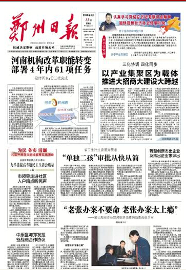 郑州日报:祝贺2012郑州市企业家活动日举行